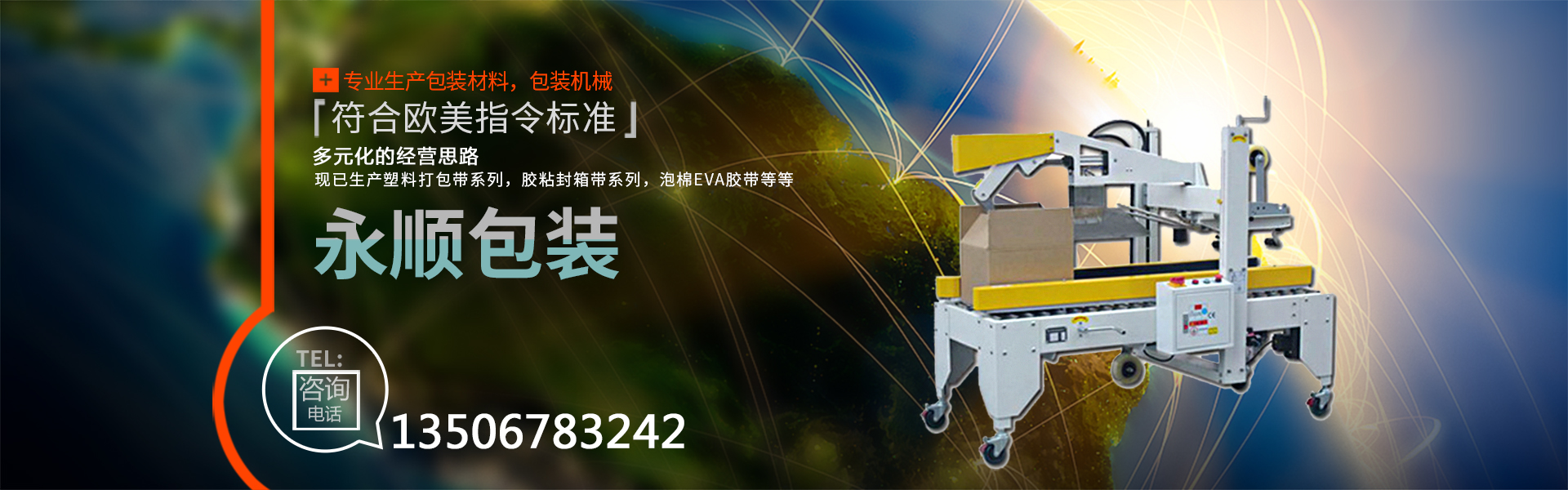 慈溪市永順包裝材料有限公司是一家專業(yè)生產(chǎn)包裝材料,包裝機(jī)械的廠家。公司自創(chuàng)建以來,經(jīng)過不斷的努力,憑借優(yōu)異的產(chǎn)品質(zhì)量,良好的售后服務(wù),在市場上取得了突飛猛進(jìn)的業(yè)績,獲得了客戶的廣泛認(rèn)可與贊譽(yù)。公司本著多元化的經(jīng)營思路,現(xiàn)已生產(chǎn)塑料打包帶系列,膠粘封箱帶系列,泡棉EVA膠帶,鋁箔膠帶、美紋膠帶、牛皮膠帶、文具膠帶。全自動(dòng)打包機(jī),收縮包裝機(jī),移印機(jī),真空包裝機(jī),自動(dòng)封口機(jī),纏繞膜裹包機(jī),等各種包裝機(jī)械(無人化全自動(dòng)包裝機(jī)械)。其中塑料打包帶、粘膠帶已全面通過SGS認(rèn)證,符合歐美指令標(biāo)準(zhǔn)。